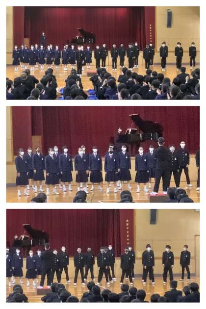 合唱コンクールの最後は2年生です。トップバッターは3組。緊張した空気に包まれる体育館でしっかりと歌い切り、合唱コンクールの素敵な空気を作ってくれました。