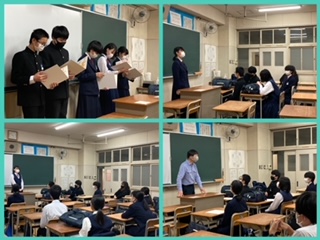 3年生の引退式がありました。1・2年生からのサプライズ動画を見た後、3年生から一言ずつメッセージがありました。
