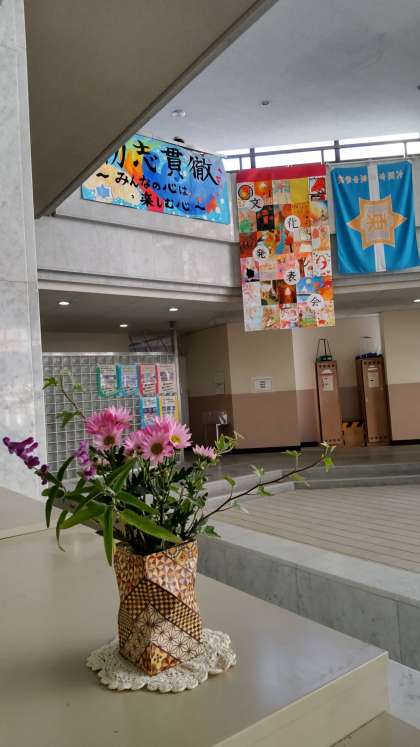 東中玄関ホール・事務室前廊下には、美しい花々を生けていただいています。