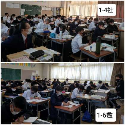朝から秋晴れで少し肌寒く感じる気温となっています。3年生は、進路に向けての実力テストでした。皆さん、真剣な表情でテストを受けていました。1,2年生の皆さんが今からできることは、日々の勉強を大切にすることだと思います。頑張ってください。