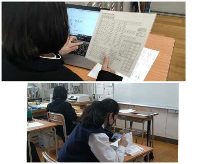 実習生が授業見学をされています。生徒のみなさんは「こんにちは!」と実習生にあいさつできていました。