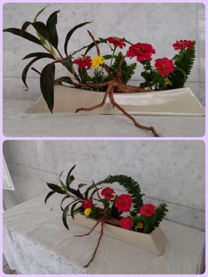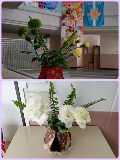 東中玄関ホール・校長室・事務室前廊下には、美しい花々を生けていただいています。