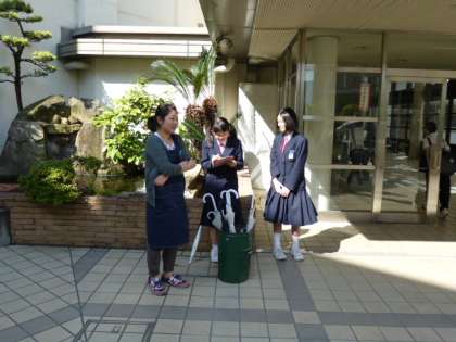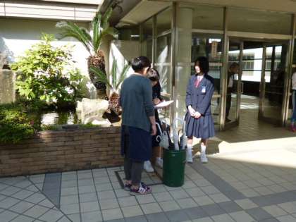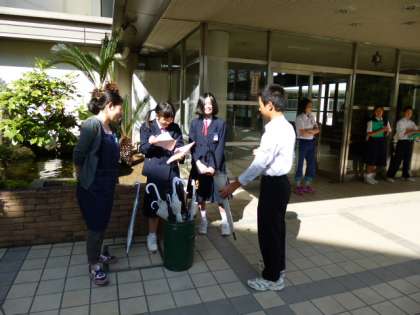 生徒会の皆さんが、朝から、傘を借りた生徒から、傘の