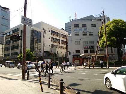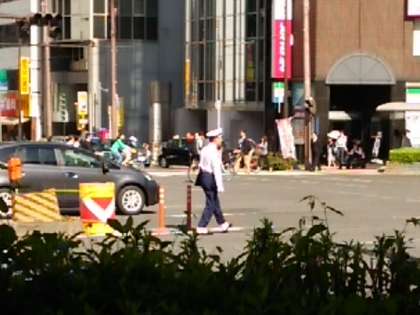 東中付近の街のあちらこちらに交通課の警察官の方々の姿が見られます。まさに、本校西側谷町三丁目にも、安全を守る警察官の方の姿が見られます。