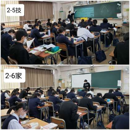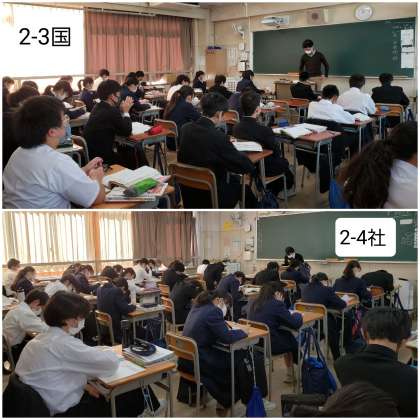 朝から冷たい雨が降り続いていましたが、ようやく晴れ間が見え少し暖かい日差しが注ぎ込んでいます。さて、本日の授業のようすです。皆さん、頑張ってください。