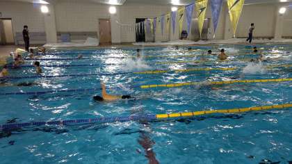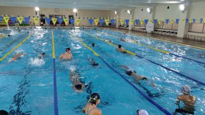 本日も上宮高校のプールをお借りして合同練習をしています。寒くなってきましたが、東、高津、墨江丘、淀の4校で熱心に練習しています。