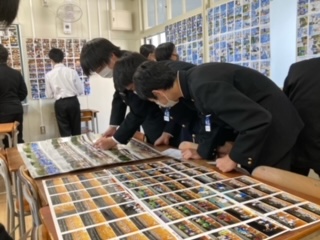 学習室では、修学旅行と体育大会の写真展示を行っています。進路懇談お帰りの際に、保護者の方に見ていただくこともできます。