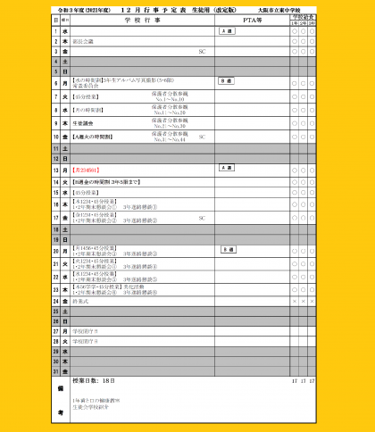 12月の行事予定表を掲載します(こちらをクリックするとご覧いただけます)。