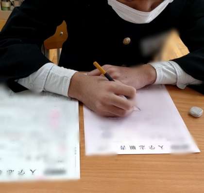3年生は、入試にむけて入学志願書の書き方を学んでいます。文字をバランスよく丁寧に書くことは難しいですが、頑張って練習しています!