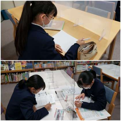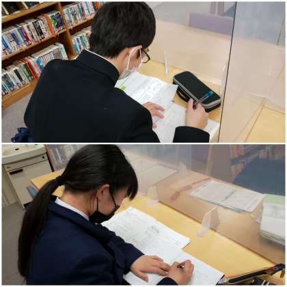 本日もあさっての期末テストに向けて、図書室で勉強している人がいます。あさってからの期末テストに向けて頑張ってください。