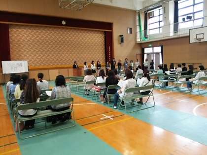 予算総会で本年度の予算が承認されました。そのあとには、新しいPTA役員の方々の紹介がありました。PTAの代表として今年1年間よろしくお願いします。