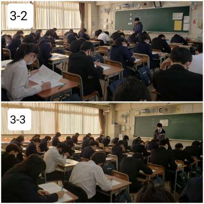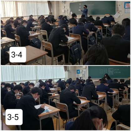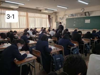 昨日より寒さは緩み、日向では少し暖かさを感じる日となっています。本日は、期末テスト2日目です。皆さん、真剣な表情で取り組んでいます。あと1日頑張ってください。
