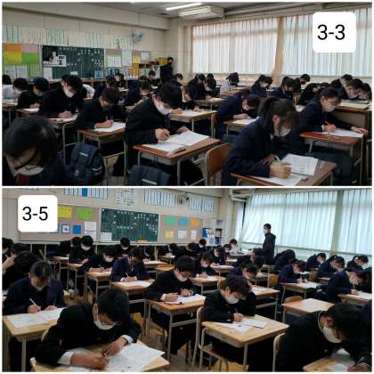 さて、本日3年生は第4回実力テストとなっています。進路を決定する大事なテストです。皆さん、頑張ってください。