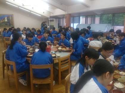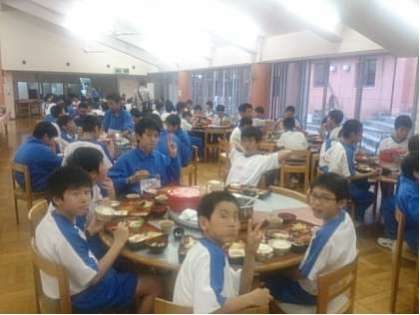 楽しみな夕食!みんな、わいわい言いながら、美味しそうに食べています!夕食の後は入浴です。