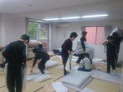 東中1年生は、6時30分に起床し、部屋の片付けです。
