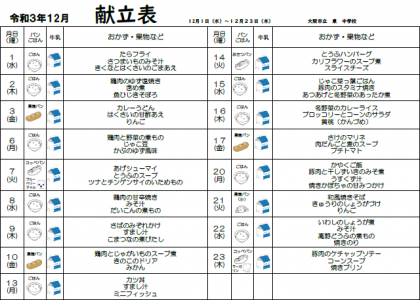 12月の給食献立表を掲載します。「12月給食献立表」はこちらをクリックするとご覧いただけます。
