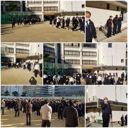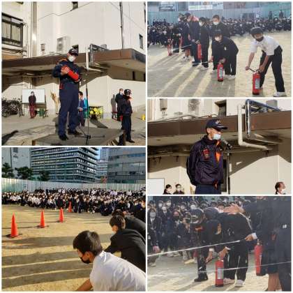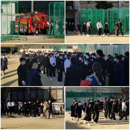 本日、火災を想定した避難訓練を行いました。また、代表生徒により水消火器での消火訓練を行いました。今回は慌てることなくスムーズに行動できていました。午前中にも地震があるなどいつ災害に見舞われるかもしれません。今後も指示を守り、落ち着いて行動できるようにしましょう。