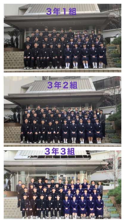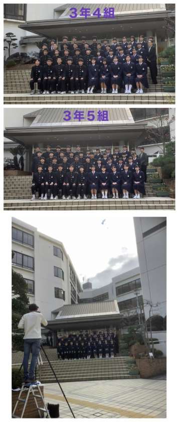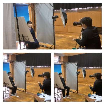3年生は、卒業まで3ヶ月ばかりとなり、仲間と過ごす日々も残り少なくなってきました。今日の午後は、卒業アルバム用の学級写真と個人写真、そして、入学志願書などに使う証明用写真を撮影しました。