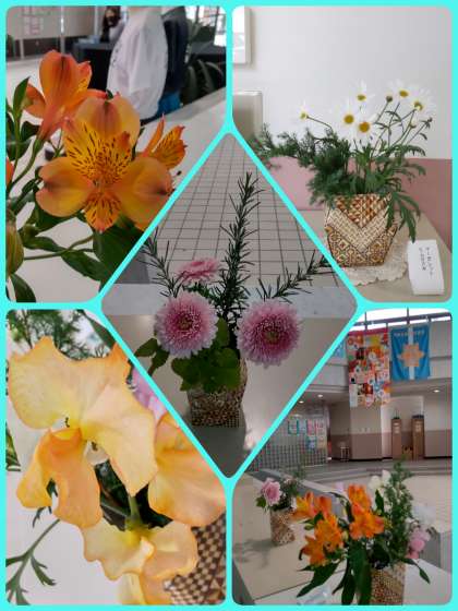東中玄関ホール・校長室・事務室前廊下には、美しい花々を生けていただいています。