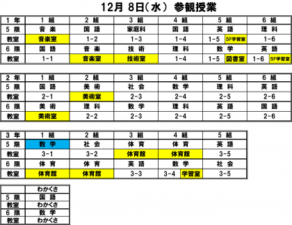 なお、分散参観につきましては、教室前廊下からとさせていただきます(一部除きます)。ご理解とご協力をお願いします。
