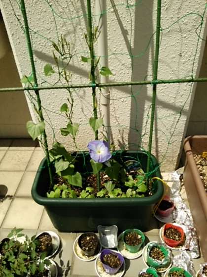 4月22日に苗を買ってきて植えたあさがお(天上の蒼)がようやく開花しました。まだまだつぼみがあります。これからが見頃です。1枚目は4/22、2枚目は5/7、そして3枚目は5/20です。続報出しますのでよろしく。