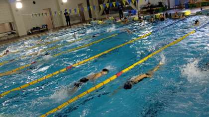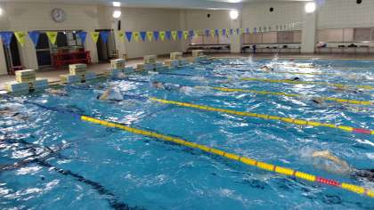 本日も、上宮高校のプールをお借りして合同練習をしています。淀、堀江、墨江丘、東の5校です。外は寒いけど全員一生懸命泳いでいます。