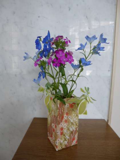事務室前、職員室前にあるお花は、学校支援ボランティアの松本さんが生けてくださっています。