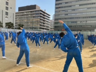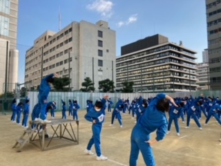 準備体操を行い、球技大会が始まります。