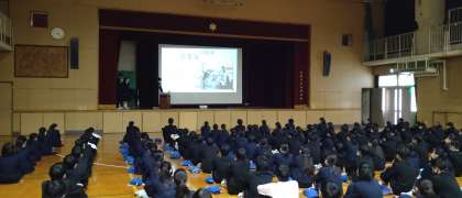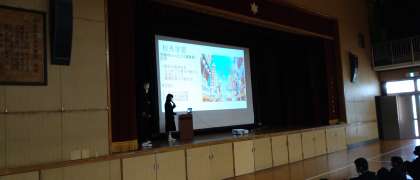 各クラスの代表が、校外学習で学んだことを工夫して発表しています。