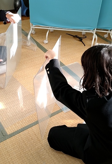 新型コロナウイルス感染症対策で、わかくさ学級にパーテーションをいただきました。そのパーテーションを組み立てています。