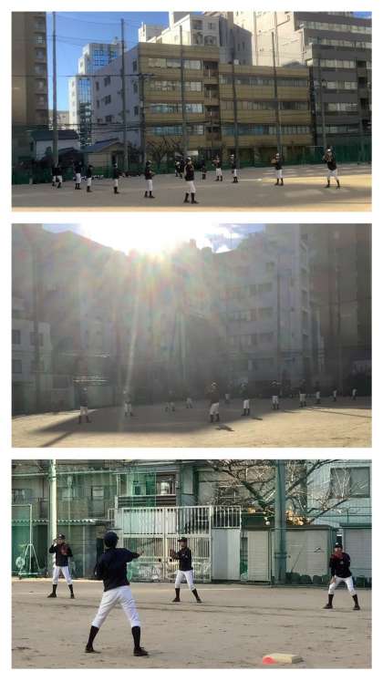 たいへん気温が低い朝ですので、入念にウォーミングアップをしてからキャッチボールをしています。