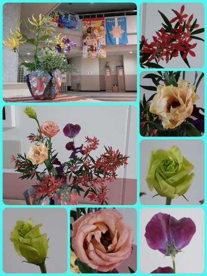 東中玄関ホール・校長室・事務室前廊下には、美しい花々を生けていただいています。