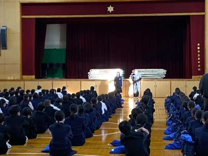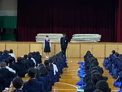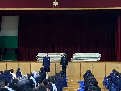 各クラスの学級代表が自分のクラスの良い点と改善点、そして他のクラスのいいところを発表してくれました。3学期はさらにクラスが一丸となって、充実した毎日を送れるよう頑張りましょう!