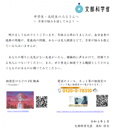 文科相メッセージ〜不安や悩みを話してみよう〜