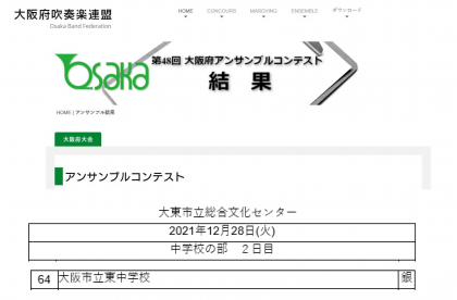 「第48回 大阪府アンサンブルコンテスの結果(大阪府吹奏楽連盟のHP)」はこちらをクリックしてご覧ください。