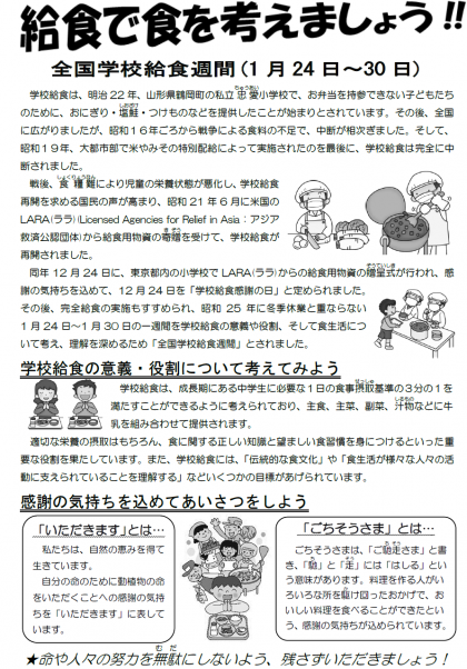 「給食で食を考えましょう!!」はこちらをクリックするとご覧いただけます。