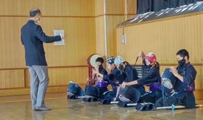 また、練習後には、明日に全国大会を控えた九州の小学生5名が来校。中学生は自由参加としましたが、小学生とはいえ、全国レベルの選手と竹刀を交えたいと願う生徒達が居残りで参加しました。大会直前だけあって、小学生は軽めの稽古でしたが、元気のいい姿に、こちらまで元気をもらえました。明日の全国大会の舞台では、全力を出し切れますように・・・。