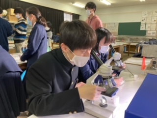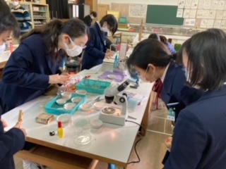 2年生が集まって理科の自由研究を行いました。今日は中高連携で他校の先生方にもお集まりいただき、一緒に学習しました。