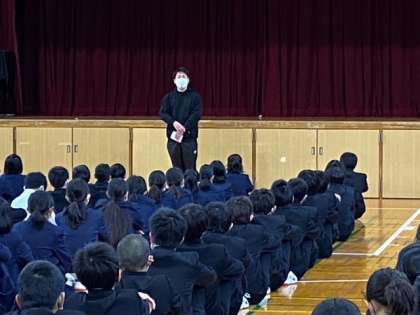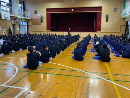 今年に入り、初めての学年集会です。皆さん"今年の目標"は決まっていますか?自分自身で今年中に挑戦することを決め、そこから今やるべきスモールステップを考えましょう。自ら考え、実行しようとすることが大切です。今年も頑張りましょう!