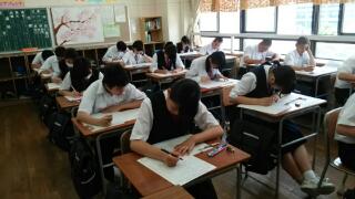 全国学力学習状況調査に続き、3年生になってから二回目のテストです。みんな気合いが入っているようです。