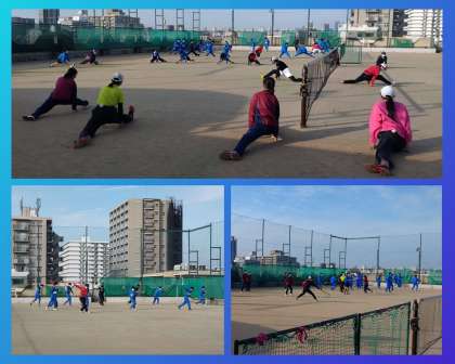 1つのグループは、汎愛高校での合同練習です。ボールを使った練習をする前に、30分程度の時間をかけて、しっかりとアップをしました。