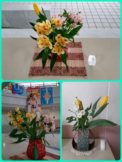 暦は「大寒(1月20日)」を過ぎ「立春(2月4日)」に向かい、「寒の内」も折り返しを過ぎました。玄関ホールと職員室・校長室前には、心を癒し、落ち着かせてくれる生花を生けていただいています。今回は、春の到来を告げる「チューリップ」もあります。いつもありがとうございます。