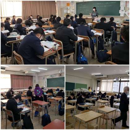 本日も寒い日となっていますが、来週の予報では少し寒さが和らぐようです。本日の授業のようすです。1,2年生は来週金曜日に実力テストとなっています。皆さん、寒さに負けず頑張りましょう。