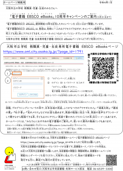 大阪市立図書館 電子書籍EBSCO eBooksアクセス増(10周年記念キャンペーン)について