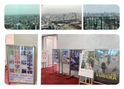 大阪市中学校造形展・近畿中学校美術展が、あべのハルカス24階にある大阪芸術大学スカイキャンパスを会場に開催されています。今日は最終日。大阪のみならず近畿各地から力作が展示されている中、東中からは1年生の木彫りプレートと2年生の本格陶芸で造った豆皿を展示していただき、素敵な作品は会場で存在感がありました。