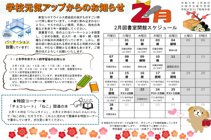 学校元気アップからのお知らせ(2月)を掲載します。(こちら)