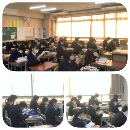 2年生の朝の読書の様子です。生徒たちは主体的に、静かに読書のひと時を過ごしています。最高学年が目前です。