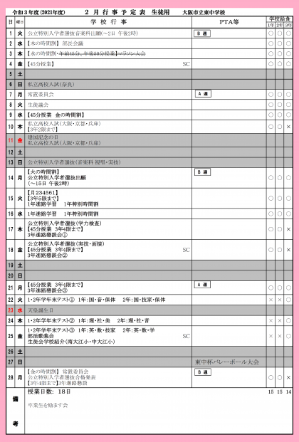 令和4年2月 行事予定表【再掲します】