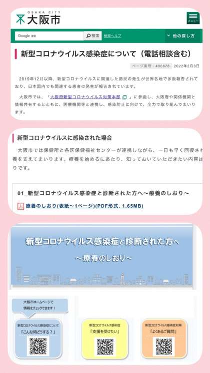 大阪市のホームページ「新型コロナウイルス感染症について(電話相談含む)」が2月3日に更新されています。こちら