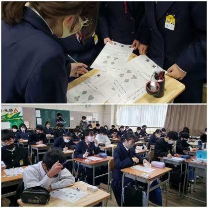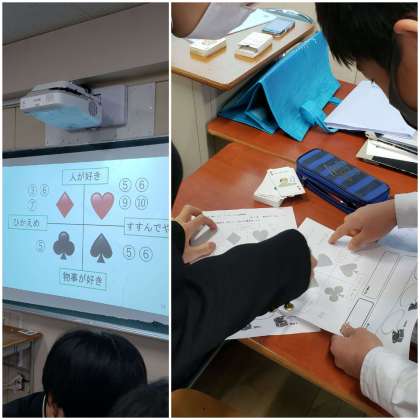 1年生は2日に渡って高校の先生をお招きして進路学習を行いました。SPトランプを活用して性格を分析し、自身に合った職業選択を行うものでした。皆さん、楽しみながら取り組んでいました。